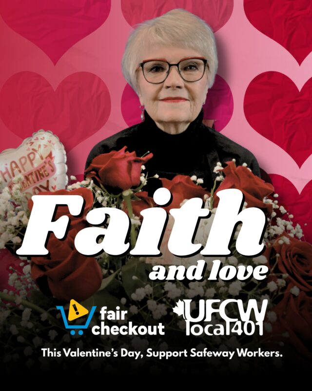 This Valentine’s Day, Faith is back, this time creating a beautiful rose arrangement while speaking directly to the public about what Safeway workers are facing.