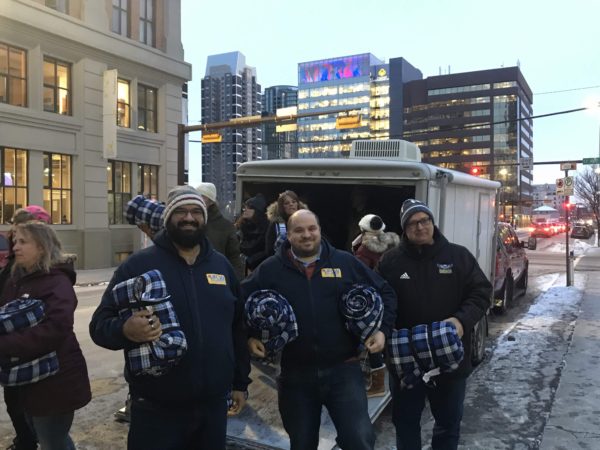 On Monday, December 16, 2019, Local 401 activists gathered at the Calgary office, loaded a trailer full of sleeping bags, and together with union staff, Executive Board members, and Officers, delivered the sleeping bags directly to homeless Calgarians in the heart of our city.