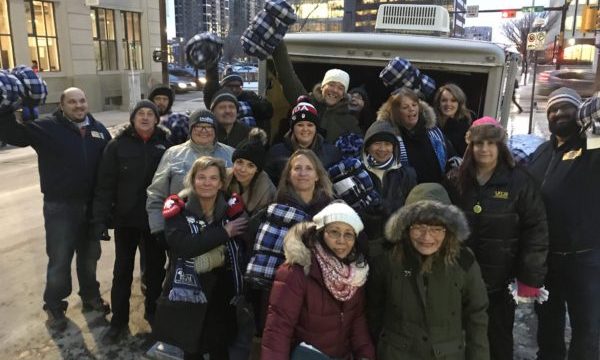 “Feeling many emotions right now,” she said. “But I am absolutely blessed, forever grateful, and positively thankful for my UFCW Local 401 Brothers and Sisters as we rallied together to distribute donated sleeping bags, fleece vests, gloves, hats, and blankets to those in dire need of assistance throughout out downtown Calgary tonight.”