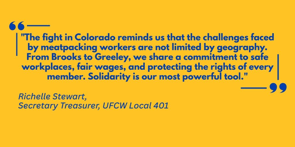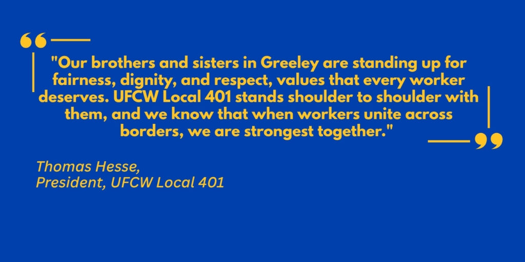 UFCW is an international union, and we strategically organize and coordinate across borders. The issues faced by workers in Greeley – wages that don’t keep pace with inflation, demanding working conditions, and the struggle for respect and dignity – mirror many of the challenges Canadian workers experience.
