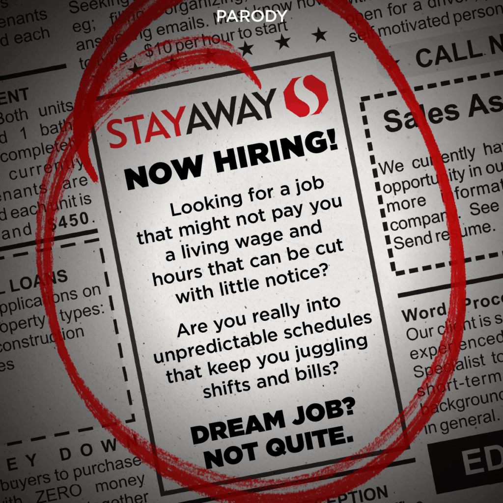 This is ridiculous. You are treating us like garbage. You cut back our wages and somehow we’ve been given more duties and responsibilities with lower pay because you refuse to give more hours/ or hire more staff. We are exhausted and tired of being broke while you guys cry because you’re “struggling” you have no idea what struggle is. My struggle is deciding between paying rent or eating for the month. Your struggle is which vacation will we have to cancel this year? ITS NOT THE SAME!!! Do better Sobeys! – Produce worker in Southern Alberta