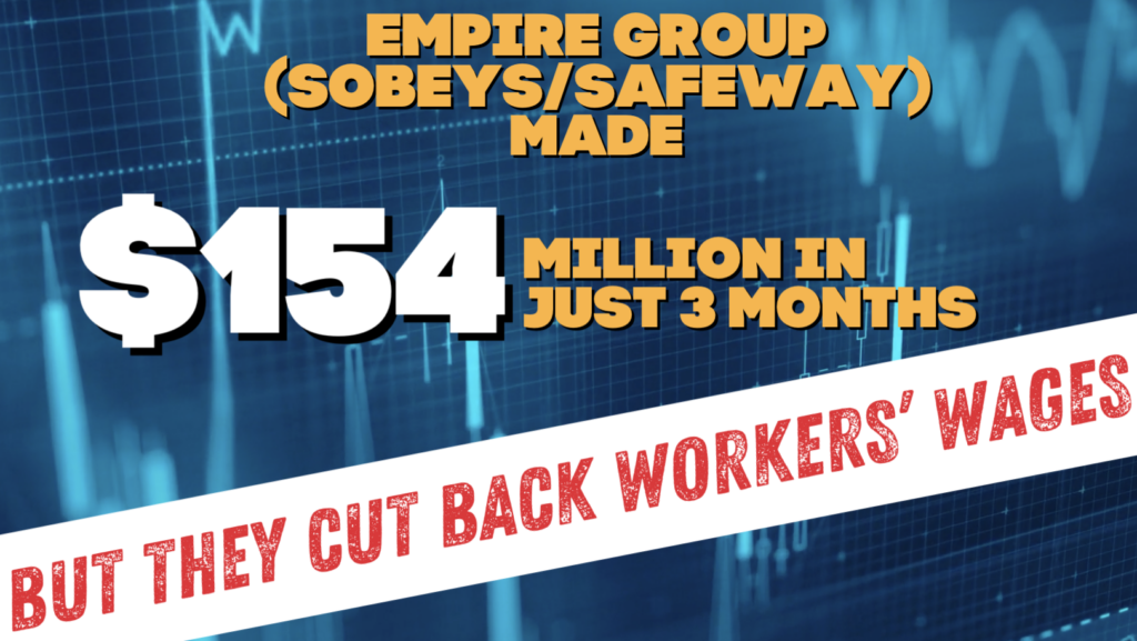 Sobeys has since reported another quarter of very high profits, while the workers who keep their stores running continue to feel the impact of that decision every single month.